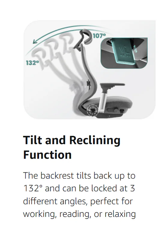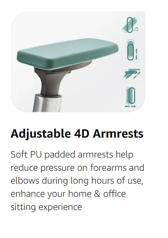 Support dorsal, lombaire réglable, appui-tête réglable, mécanisme de verrouillage d'inclinaison à quatre positions (107°-115°-123°-132°), profondeur d'assise réglable, accoudoir 4D